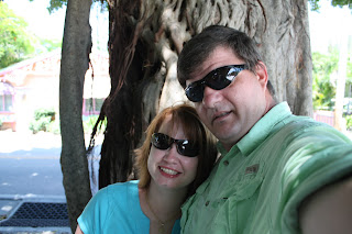 Hubby taking our photo outside The Bubble Room on Captiva Island, FL. This habit started 23 years ago when we were dating. |