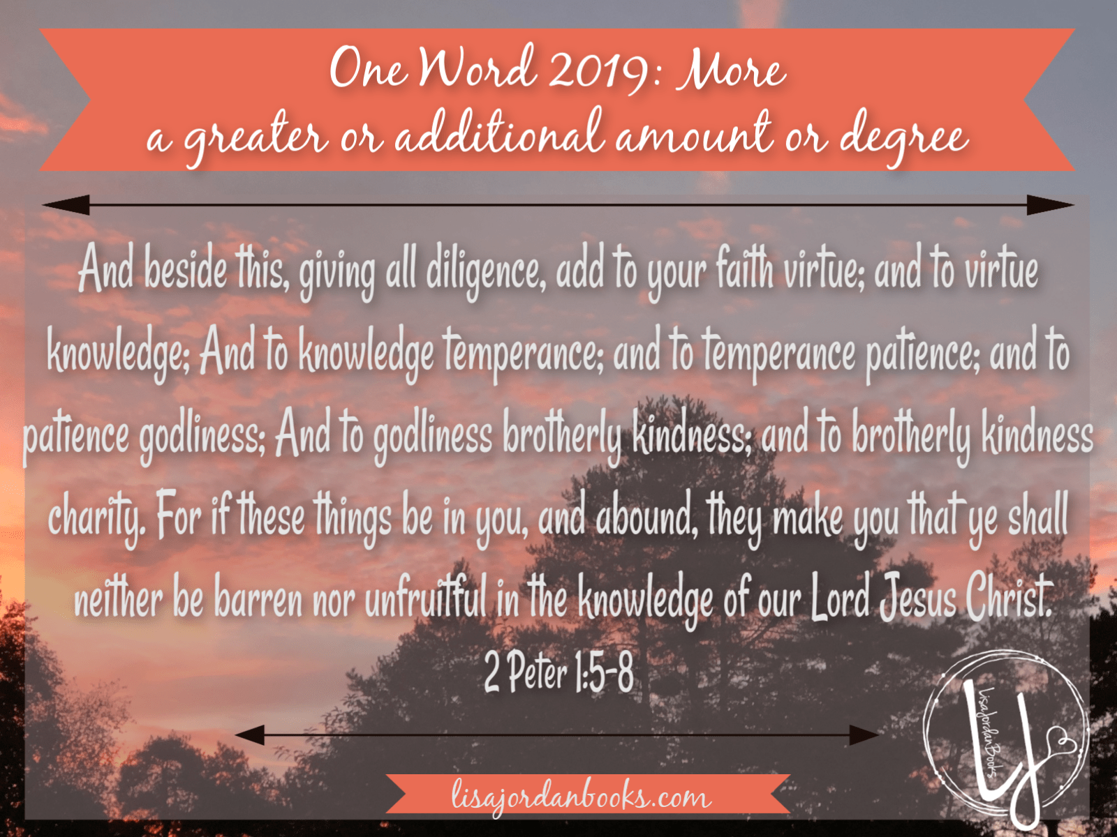 [tweetshare tweet=”Do you choose #oneword to focus on throughout the year? I chose my word and verse for 2019. #writing ” username=”lisajordan“]